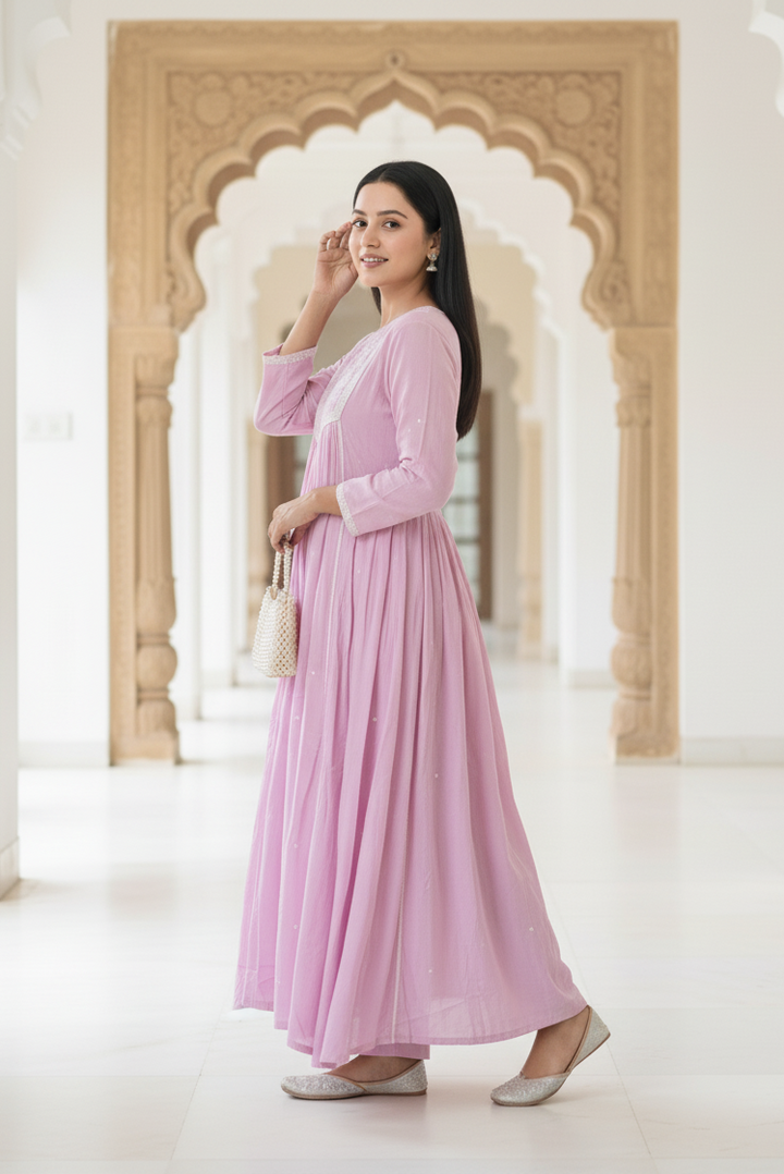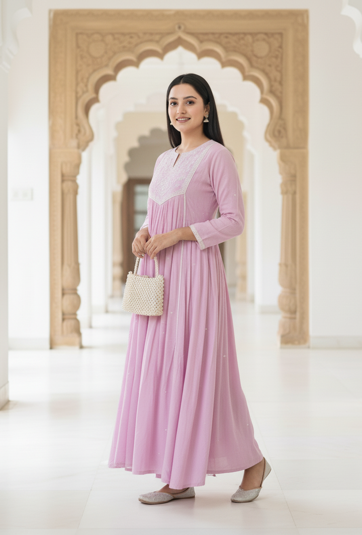 Step into graceful sophistication with this lavender 3-piece kurta set, designed with a perfect balance of comfort and charm.