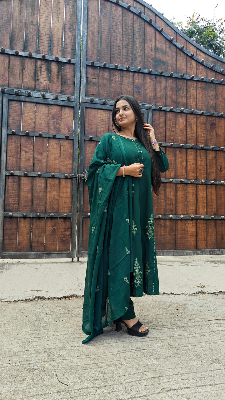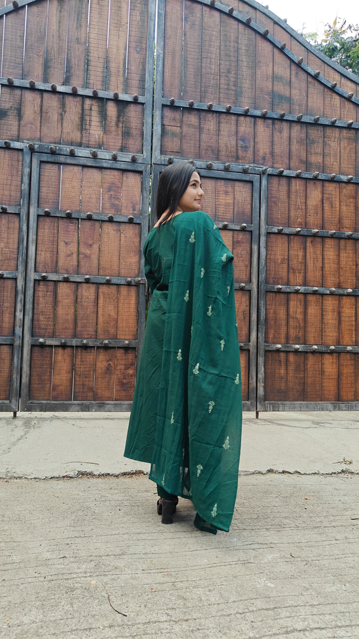 Add a touch of tradition to your wardrobe with this premium 3-piece suit set, made from soft and breathable 60x60 pure cotton fabric. The kurta is adorned with delicate daga (thread) work, giving it an elegant and ethnic appeal. The dupatta features all-over work, adding beauty and grace to the full look.