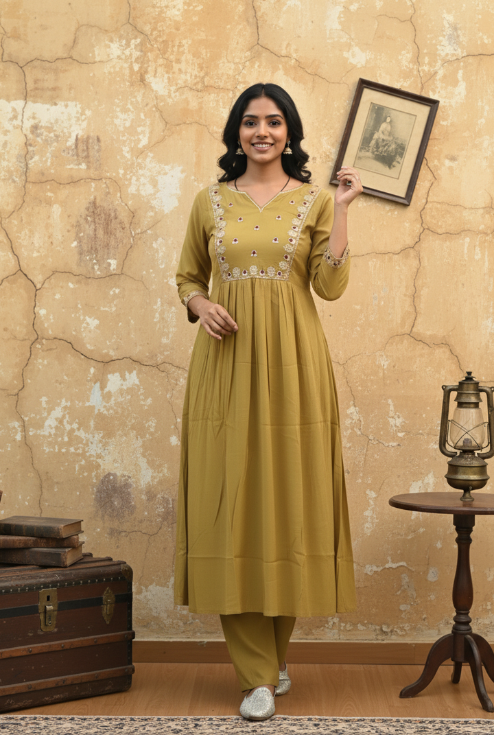 Brighten up your festive wardrobe with this vibrant parrot green kurta set, beautifully crafted to add charm and elegance to every occasion.